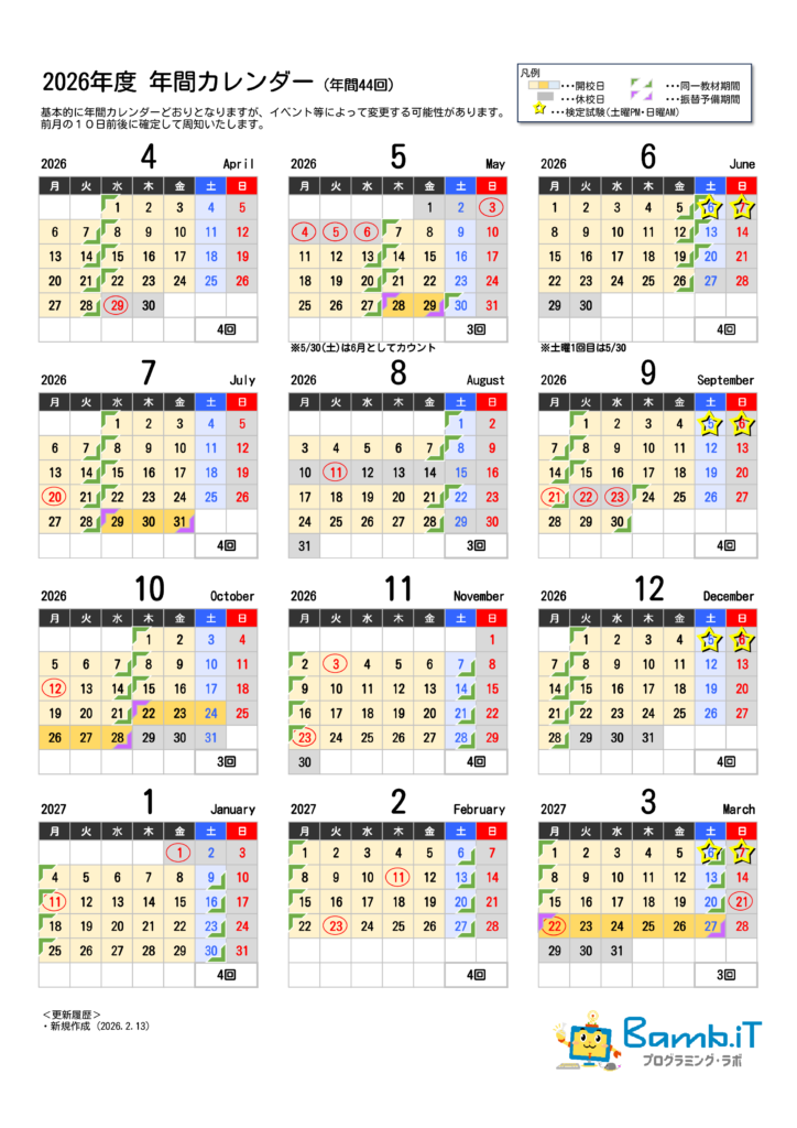 基本的に年間スケジュールどおりとなりますが、イベント等によっては変更する可能性があります。