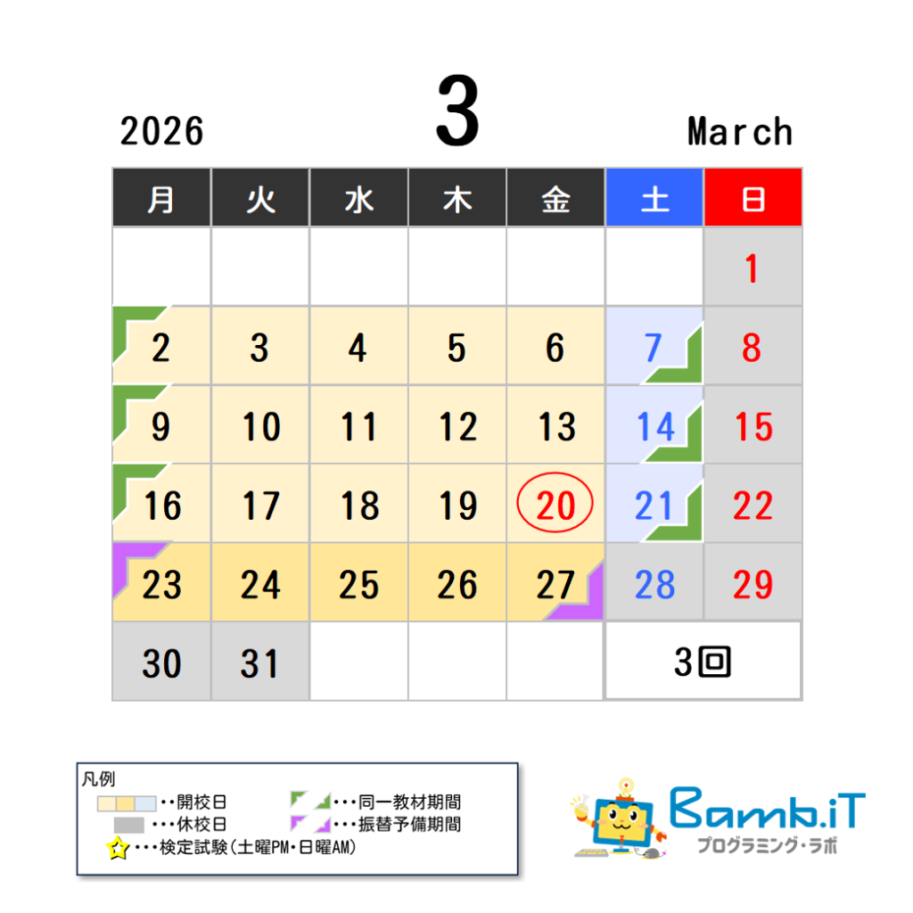 基本的には年間スケジュール通り開催しますが、最終確定は前月10日前後です。